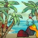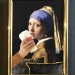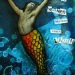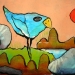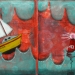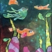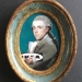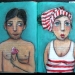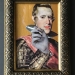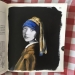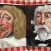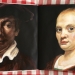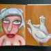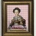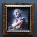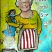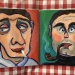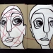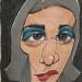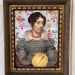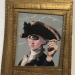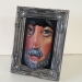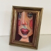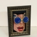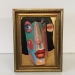 Face made of cerialbox cardboard and acrylics in an old vintage frame.